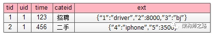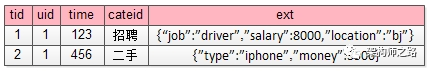 (3)通过ext来存储不同业务线的个性化需求 例如: 招聘的帖子,ext为: {“job”:”driver”,”salary”:8000,”location”:”bj”} 而二手的帖子,ext为: {”type”:”iphone”,”money”:3500}