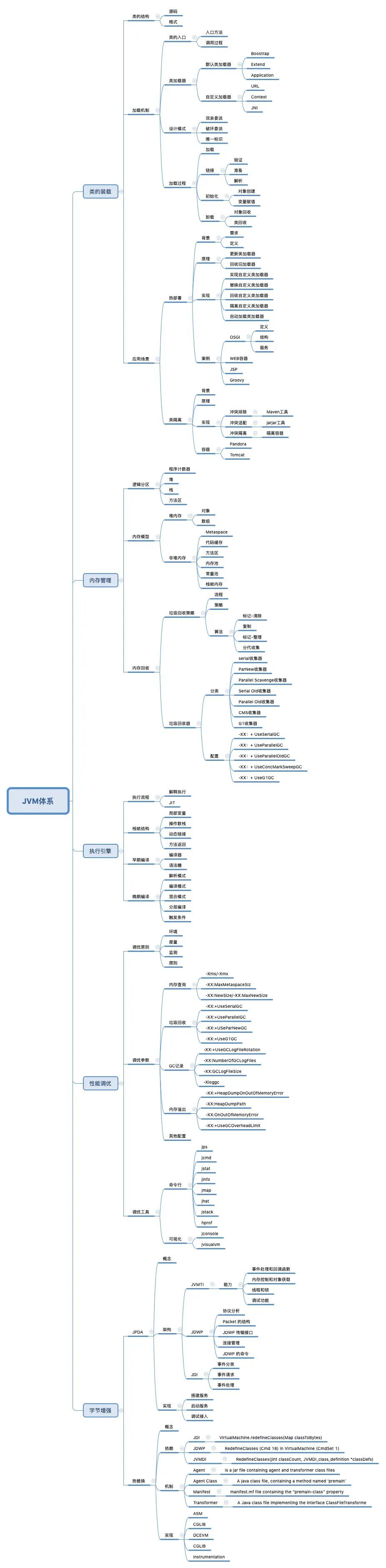 类结构,类加载器,加载,链接,初始化,双亲委派,热部署,隔离,堆,栈,方法区,计数器,内存回收,执行引擎,调优工具,JVMTI,JDWP,JDI,热替换,字节码,ASM,CGLIB,DCEVM