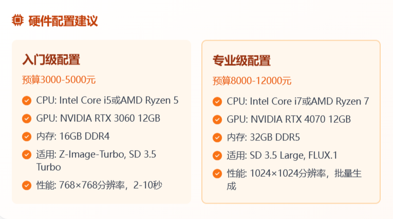 本地部署文生图模型的硬件要求因模型而异,以下是针对不同使用场景的配置建议: