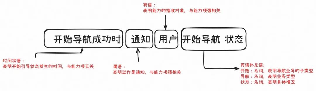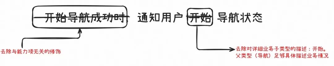 举栗:在实际事件拆解过程中,拆出了两个事件:开始导航事件和结束导航事件。这两个事件分别有通知用户开始导航状态、通知用户结束导航状态,则这两个能力项可以认为是同一个:通知用户导航状态。