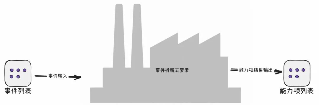 这个步骤拆解的结果是得到了事件集合,作为事件拆解成能力项的输入。