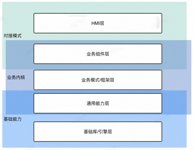 - 业务组件层:在模式层的基础上,面向HMI使用场景的业务封装,需要有清晰的个性化分类特征,如何满足不同层次的诉求;