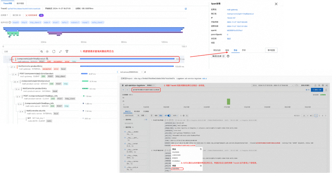 通过链路与日志、异常堆栈、请求参数等信息的关联,我们可以精准识别每一次请求关联的异常信息,有效提升错请求诊断效率。