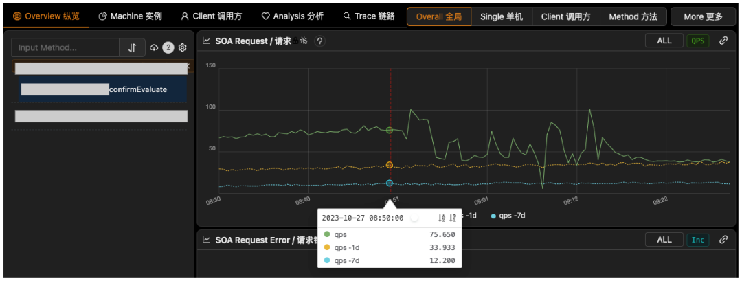 图 1:confirmEvaluate 故障当日 QPS(zone-1 和 zone-2 流量之和)
