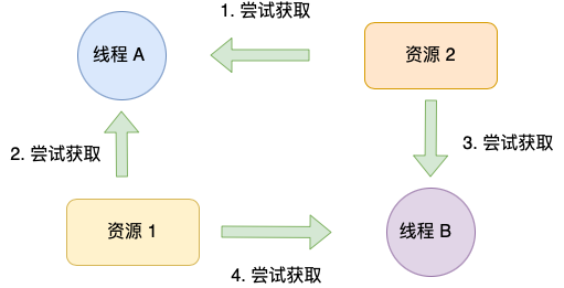 - 环路等待条件:环路等待条件指的是,在死锁发生的时候,两个线程获取资源的顺序构成了环形链。