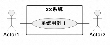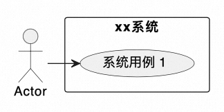 actor Actorrectangle "xx系统" { usecase "系统用例 1" as UC1}