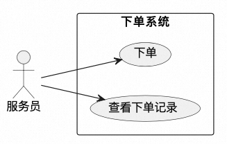 所以,从上可以得出下单、查看下单记录满足系统用例的概念,系统用例图如下