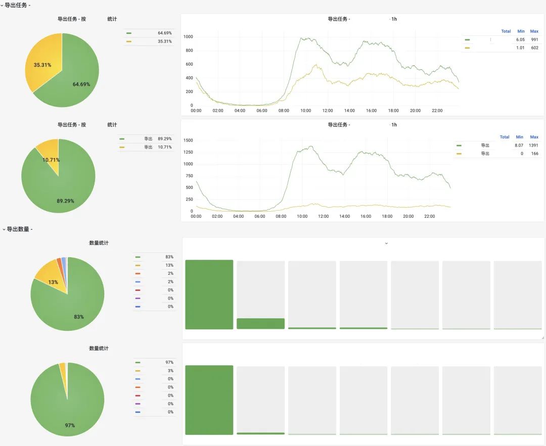 通过重点理解产品业务需求,了解产品重点关注的除服务基础容器监控、主被调监控、请求链路等之外的核心业务指标,如对于收集表导出本地场景,我们意识到用户导出 Excel 和附件的导出行为占比与导出附件数量分布等指标对于产品未来入口设置和产品功能决策有较大意义。这驱使我们更关注业务对于导出数量上限的要求和能力,提前做好对应兜底方案。