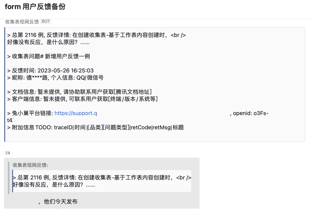 对于兔小槽用户渠道反馈,我们也做了完备的数据收集和实时推送,随时掌握一手信息并提前跟进排查,对于咨询类反馈,推动运营同学联系用户协助处理; 对于bug类反馈,拉通前端同学共同跟进解决。秉持以用户价值为依归的责任,做到故障反馈“0”容忍。