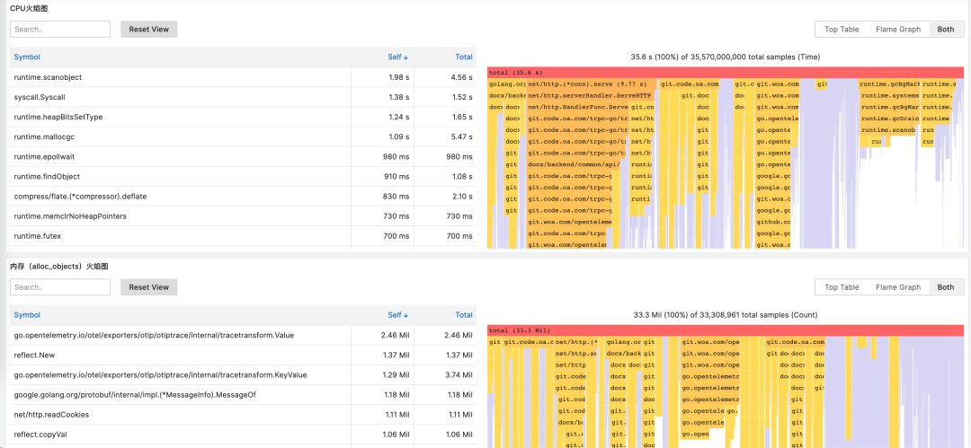 天机阁持续性能分析系统支持持续的性能分析,并将数据保存在服务端,以供 Profiling UI 近实时的查看、回溯、分析。