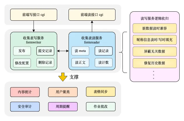 收集表是腾讯文档的核心品类之一,也是主要的用户增长来源渠道。作为在重大社会事件中承担社会责任的主要功能,收集表既面临着海量规模的压力考验,也在高速发展的业务进程中遇到了遗留技术债的掣肘。