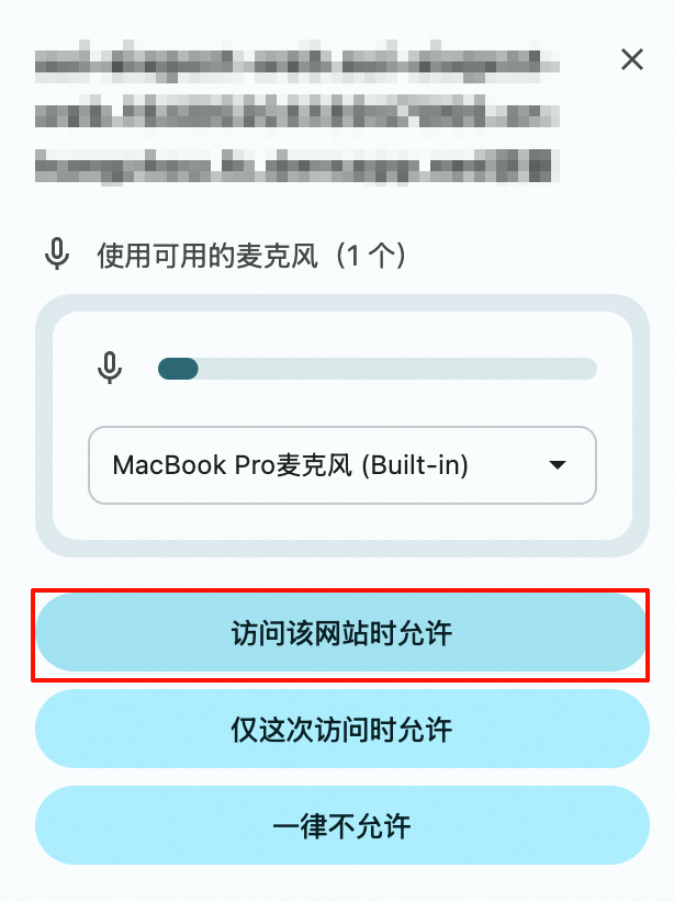 - 浏览器弹窗请求使用麦克风,点击访问该网站时允许。