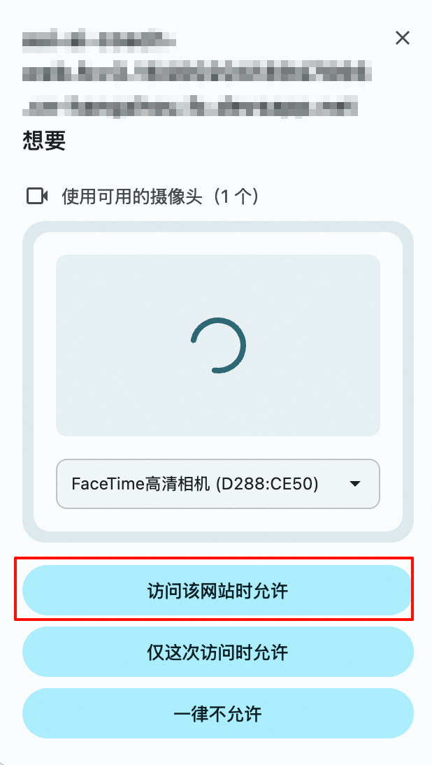 - 浏览器弹窗请求使用摄像头,点击访问该网站时允许。