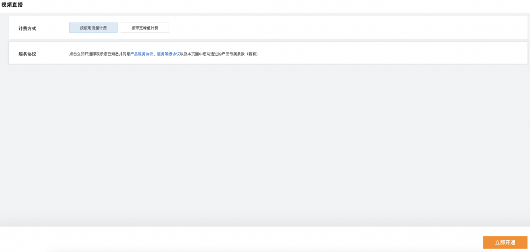 2.在服务开通页面,勾选服务协议,点击立即开通按钮。