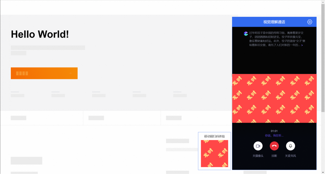 - 用户可以与智能体进行实时视觉理解通话,页面上会同步展示当前对话的文字信息,以便用户查阅对话内容。