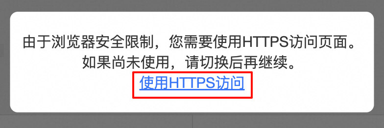 4.当您点击拨打按钮后,系统会提示使用HTTPS访问页面。请根据提示点击所提供的链接,以完成页面跳转。